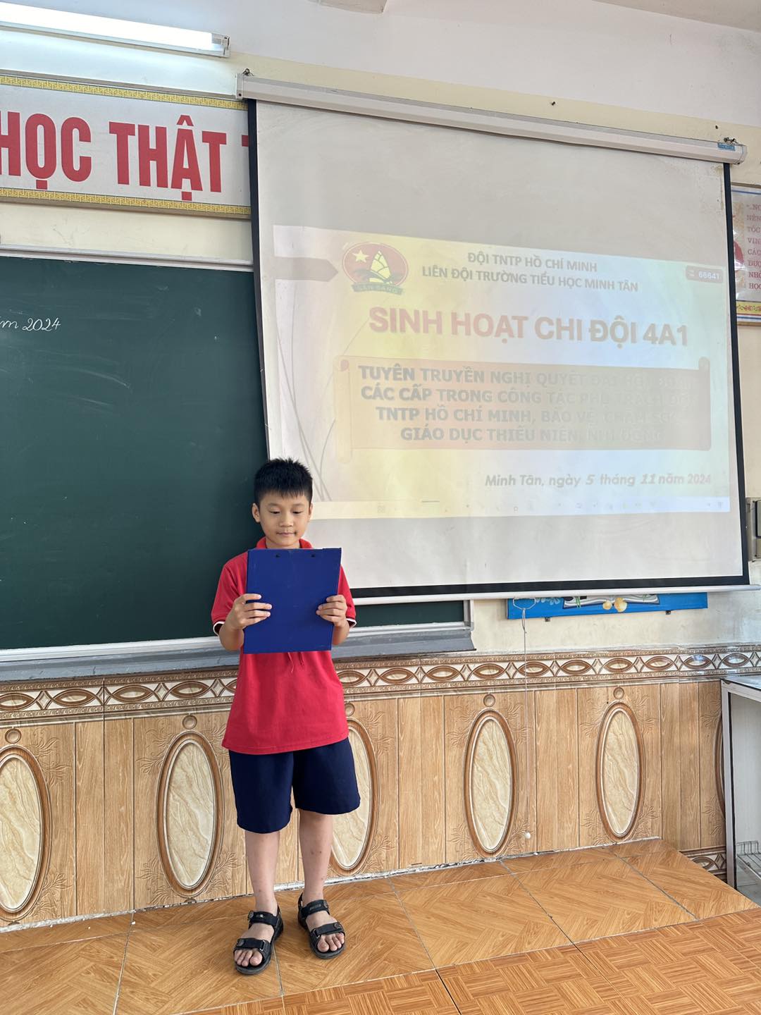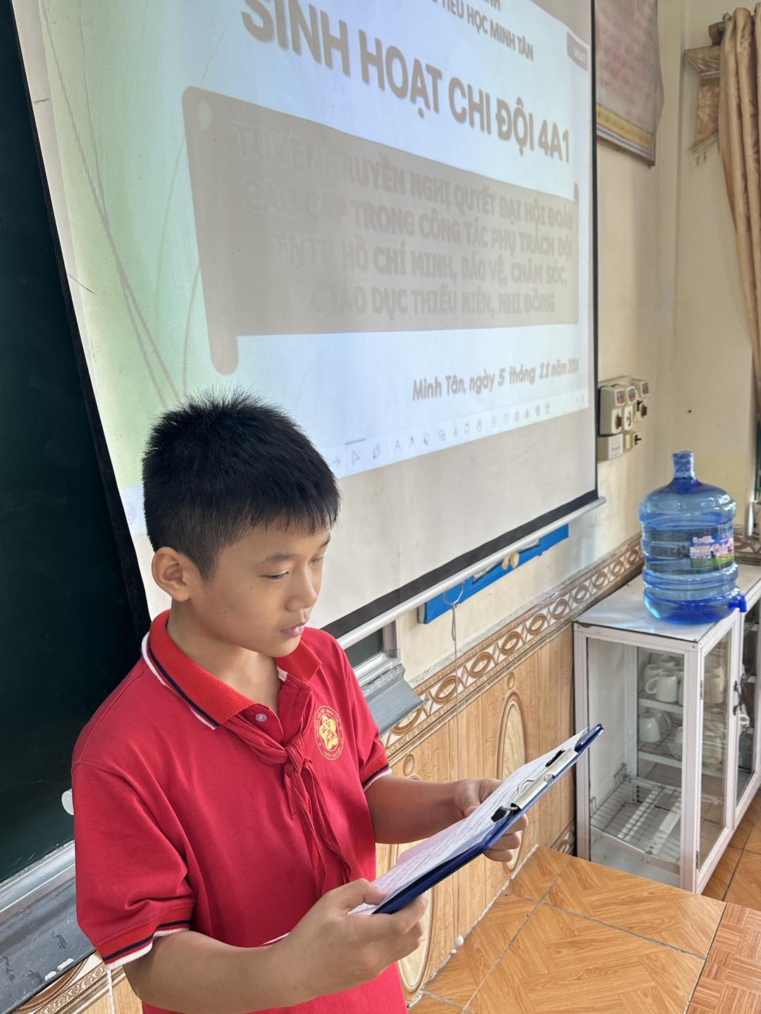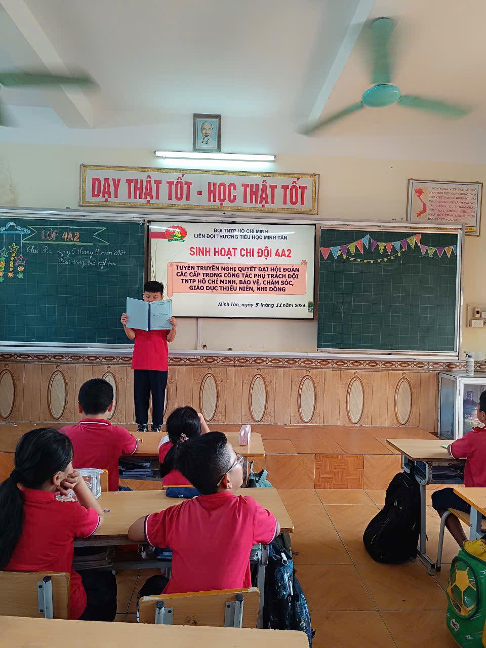 Liên đội trường Tiểu học Minh Tân tổ chức tuyên truyền Nghị quyết Đại hội Đoàn các cấp trong công tác phụ trách Đội Thiếu niên Tiền phong Hồ Chí Minh, bảo vệ, chăm sóc, giáo dục thiếu niên, nhi đồng.